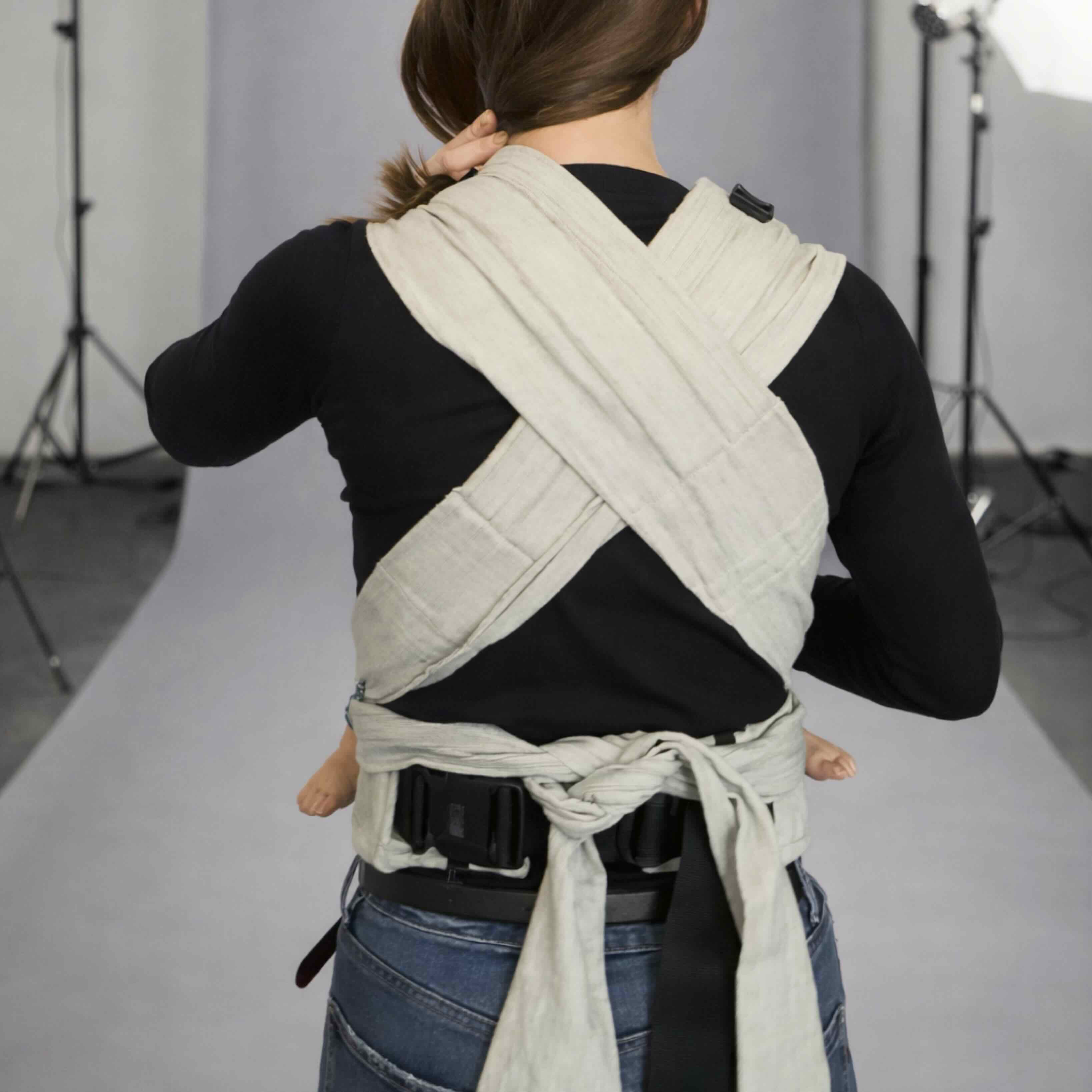 Viazanie je intuitívne a po pár použitiach sa stane úplne prirodzenou súčasťou nosenia.