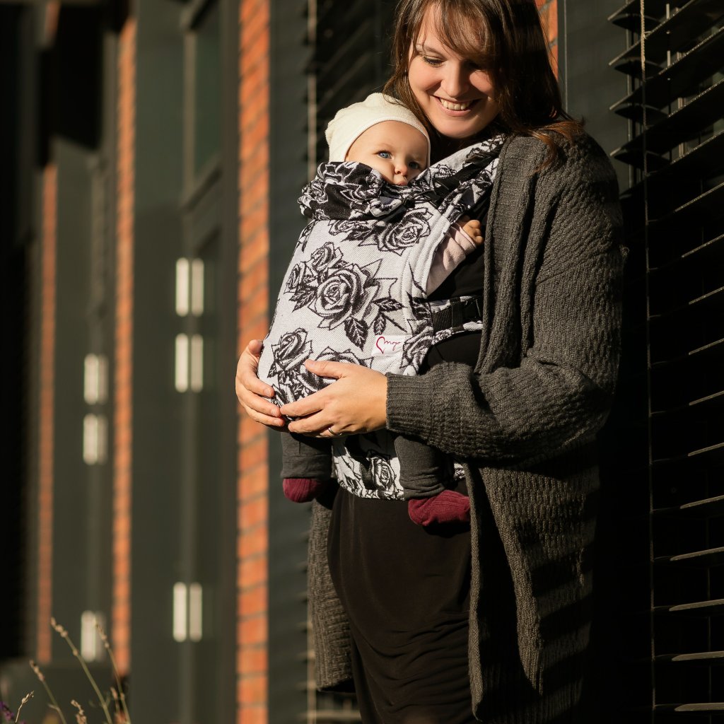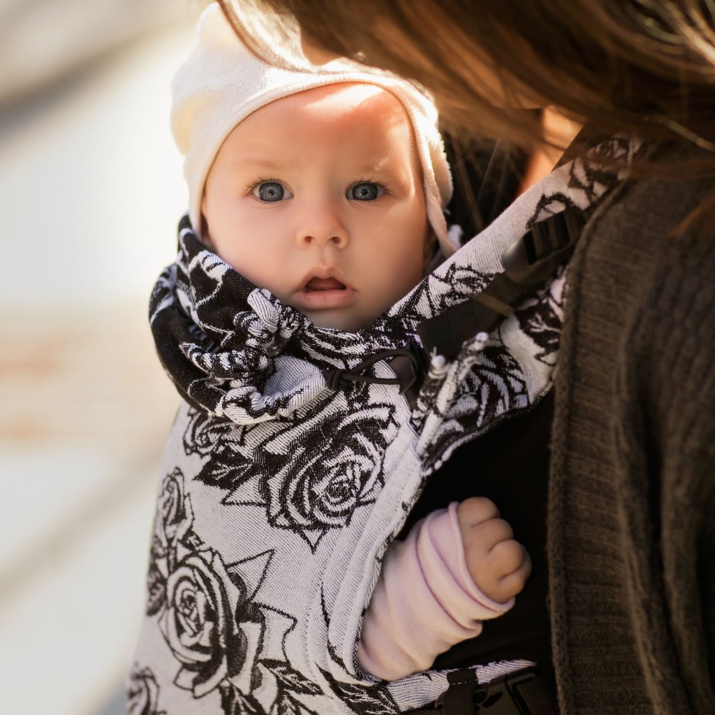 Roses Monochrome je elegantný a výrazný dizajn, ktorý spája jemnosť ruží s čistotou čierno-bieleho kontrastu. Pôsobí luxusne, moderne a zároveň nadčasovo – krásne vynikne pri každom type oblečenia. Ideálny pre rodičov, ktorí milujú estetiku, originalitu a chcú nosič, ktorý zaujme na prvý pohľad.