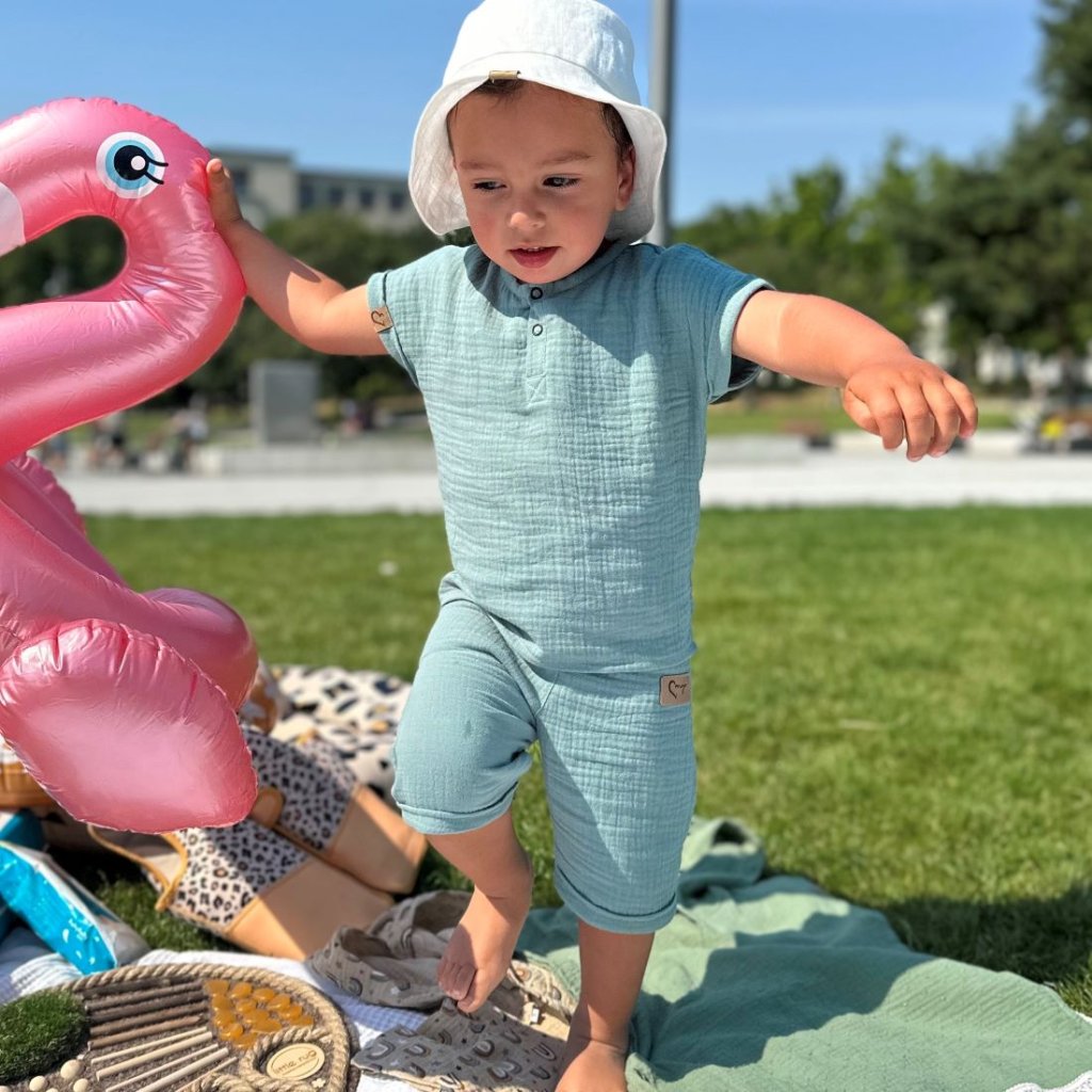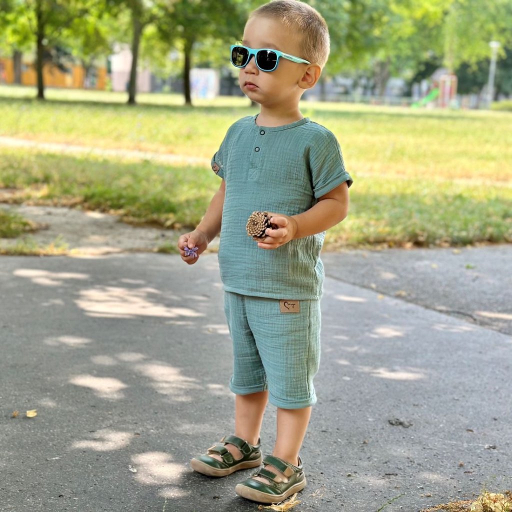 Mušelínové kraťasy MOYO sú navrhnuté ako pohodlné letné oblečenie pre deti približne od 2 rokov. Vďaka dlhšiemu strihu po kolená sú ideálne pre rodičov, ktorí preferujú viac krytia pri zachovaní maximálneho komfortu.