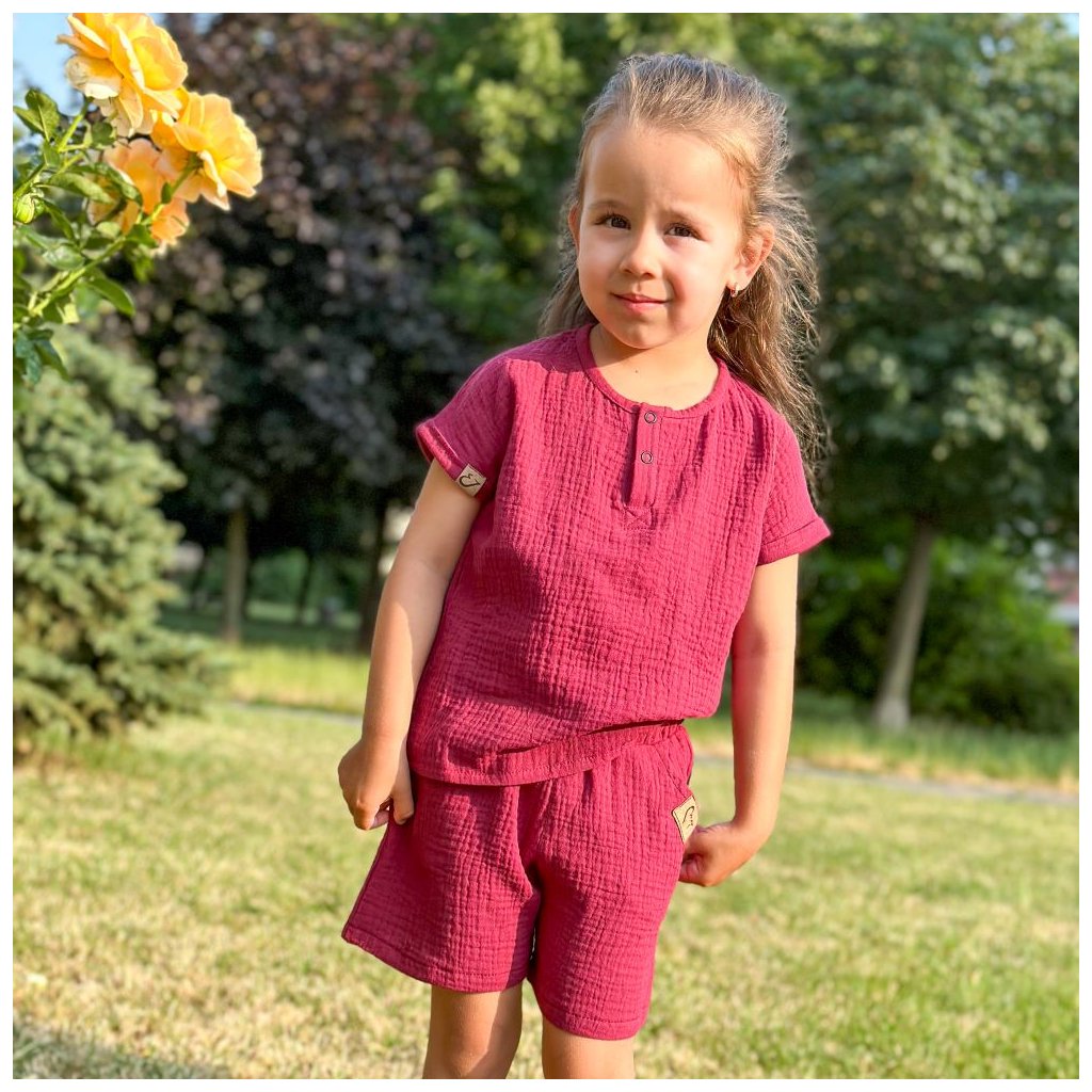 Mušelínové šortky MOYO sú navrhnuté ako pohodlné letné oblečenie pre deti približne od 2 rokov. Vďaka ľahkému materiálu a voľnému strihu sú ideálne na každodenné nosenie počas teplých dní.