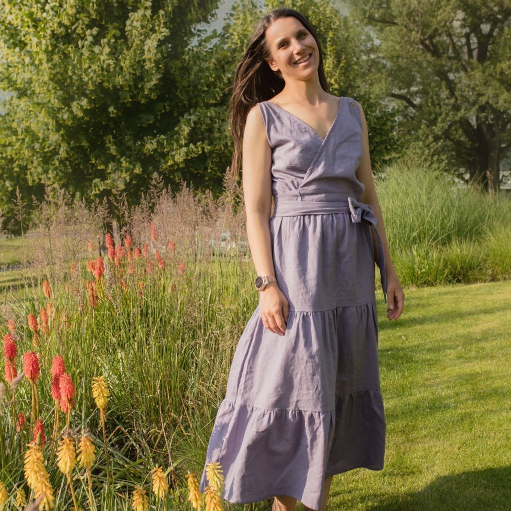 Šaty Breeze sú ušité zo 100 % ľanu – obľúbeného letného materiálu, ktorý si zamilujete pre jeho prirodzený vzhľad a komfort pri nosení.