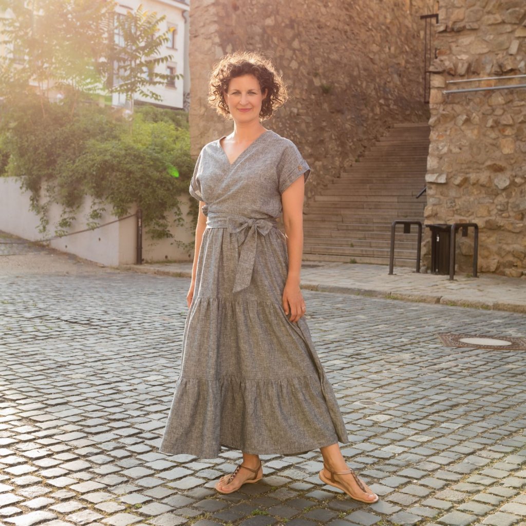 Zavinovací vrch sa prispôsobí minimálne dvom konfekčným veľkostiam, čo ocenia aj dojčiace mamičky. Zaväzovací opasok zvýrazní ženský pás a dodá šatám elegantný vzhľad.