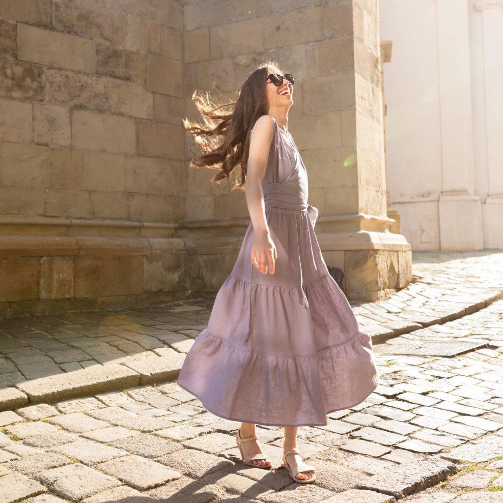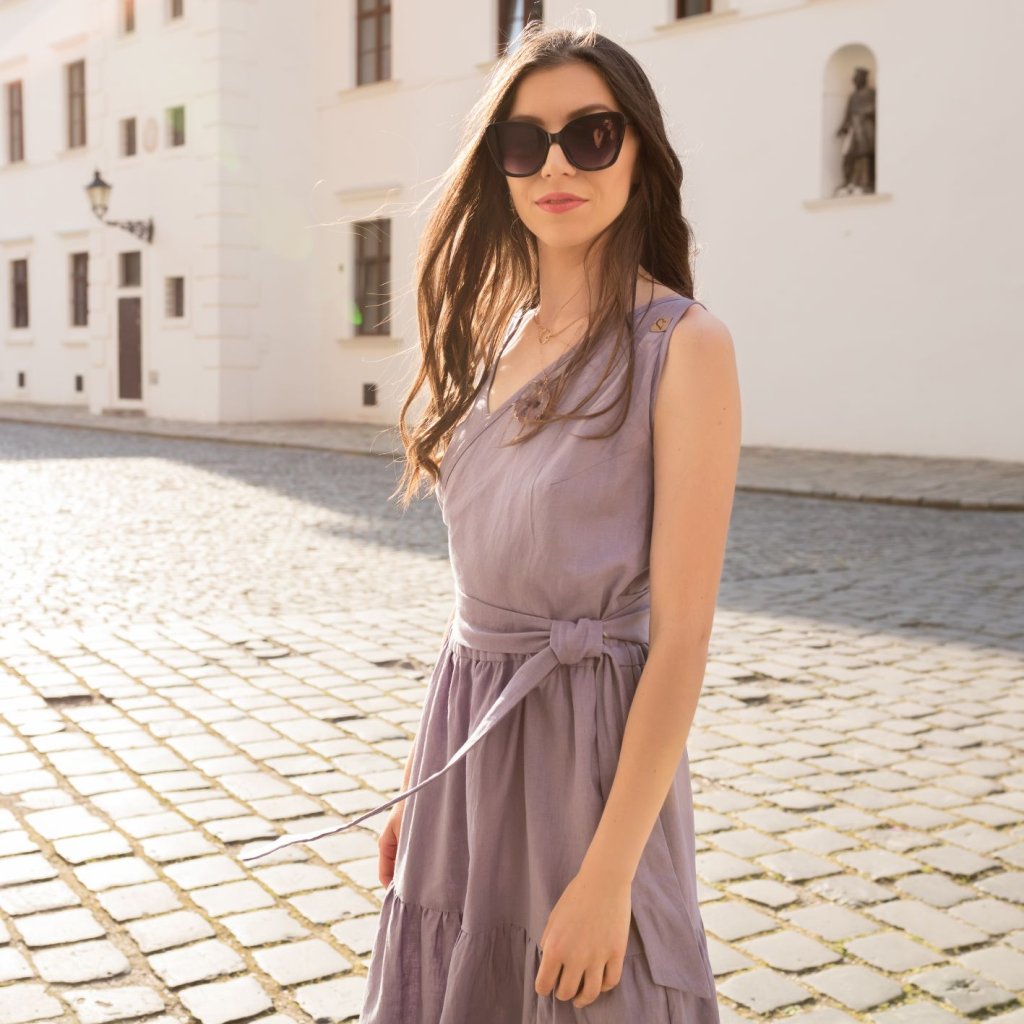 Šaty Breeze sú ušité zo 100 % ľanu – obľúbeného letného materiálu, ktorý si zamilujete pre jeho prirodzený vzhľad a komfort pri nosení.